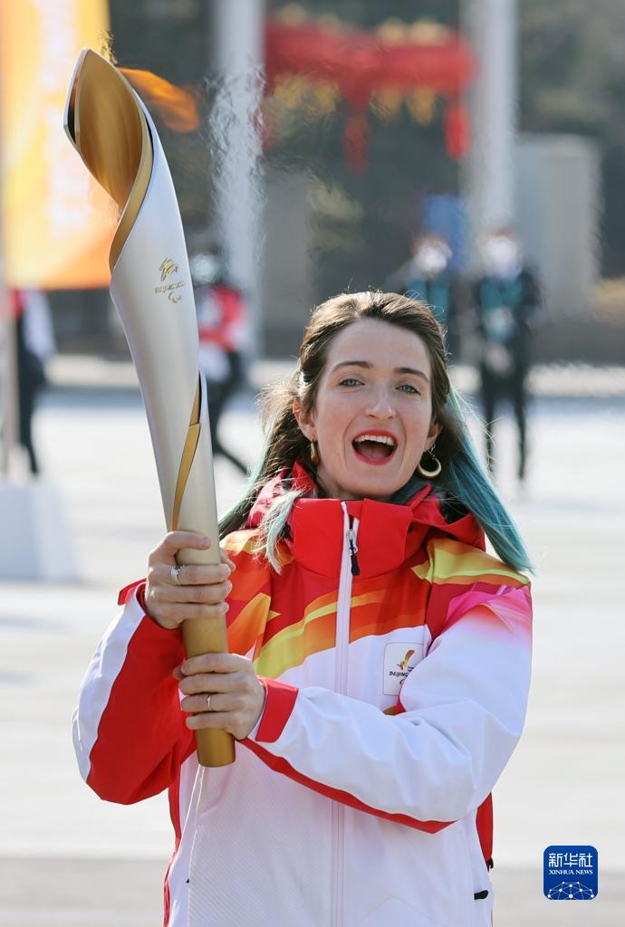 3月3日,火炬手國(guó)際殘奧委會(huì)運(yùn)動(dòng)員委員會(huì)委員瑪?shù)倌取P羅尼在傳遞火炬。新華社記者 杜瀟逸 攝
