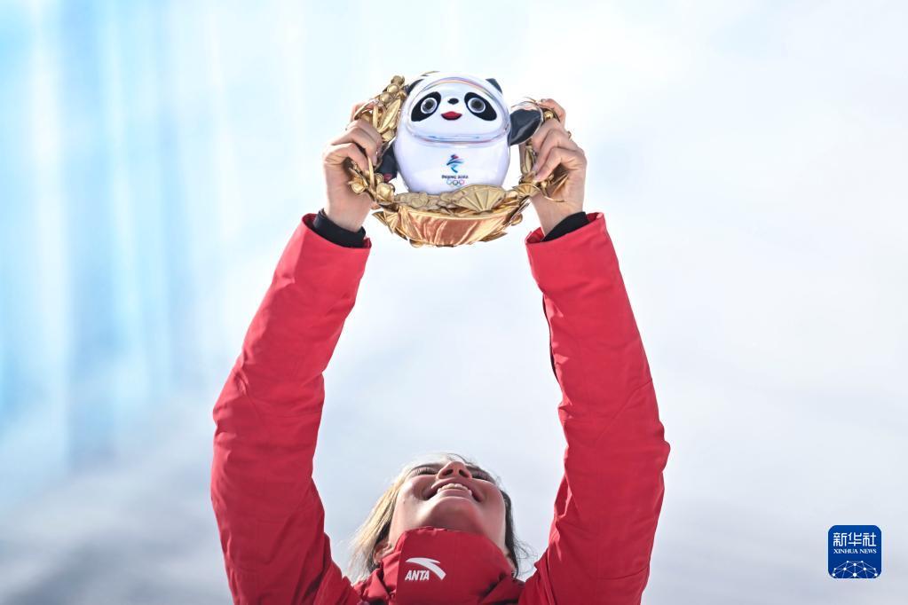 2月15日,中國選手谷愛凌在頒發(fā)紀(jì)念品儀式上。新華社記者 肖藝九 攝
