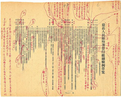 《中央人民政府最高人民檢察署試行組織條例草案》修改標(biāo)注稿(檔案類型:文書檔案;保存地:最高檢檔案館)