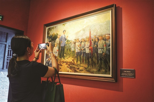 茶陵縣工農(nóng)兵政府舊址展廳里的油畫。 顧榮 攝