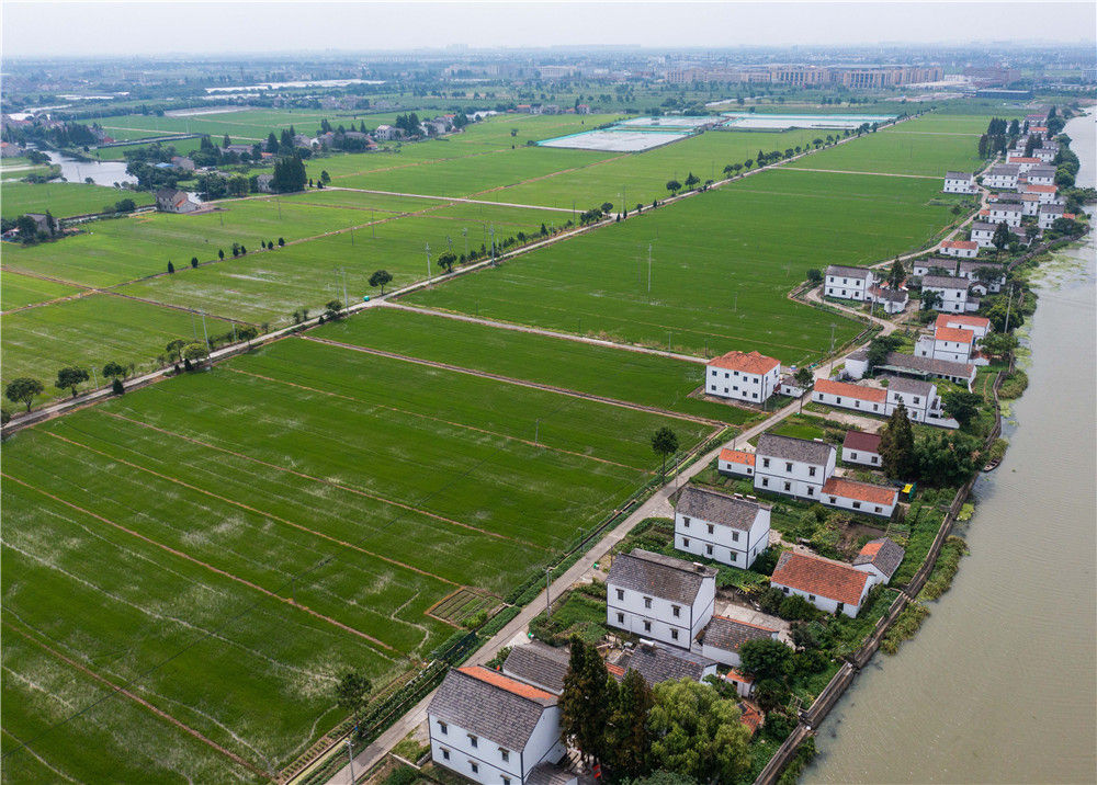 空中俯瞰浙江省嘉興市嘉善縣西塘鎮(zhèn)紅菱村的連片稻田和美麗村居(7月13日攝,無人機照片)。新華社記者 徐昱 攝