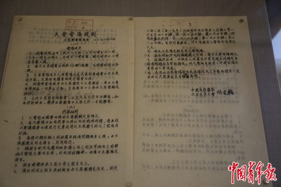 展廳第二部分“中共六大的籌備與召開”中展出的大會會場規(guī)則文件。中青報·中青網駐俄羅斯記者 張健/攝