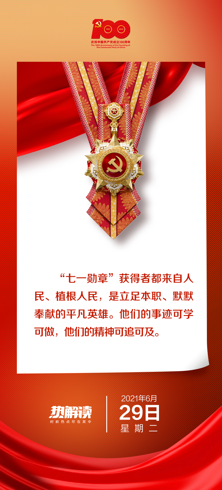 在黨的百年華誕之際頒授“七一勛章”,既是對共產(chǎn)黨員杰出代表的褒獎,更是對9100多萬名共產(chǎn)黨員的激勵。