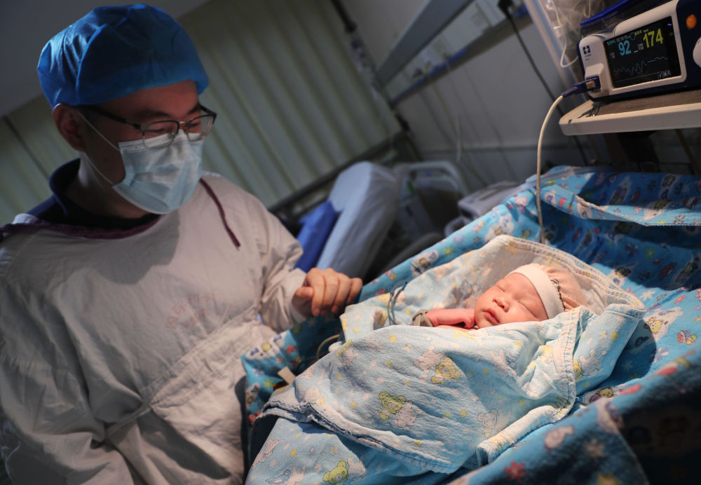 2021年7月1日凌晨,在中國福利會國際和平婦幼保健院,一位爸爸在看自己的女兒。她是該院當日首名新生兒。