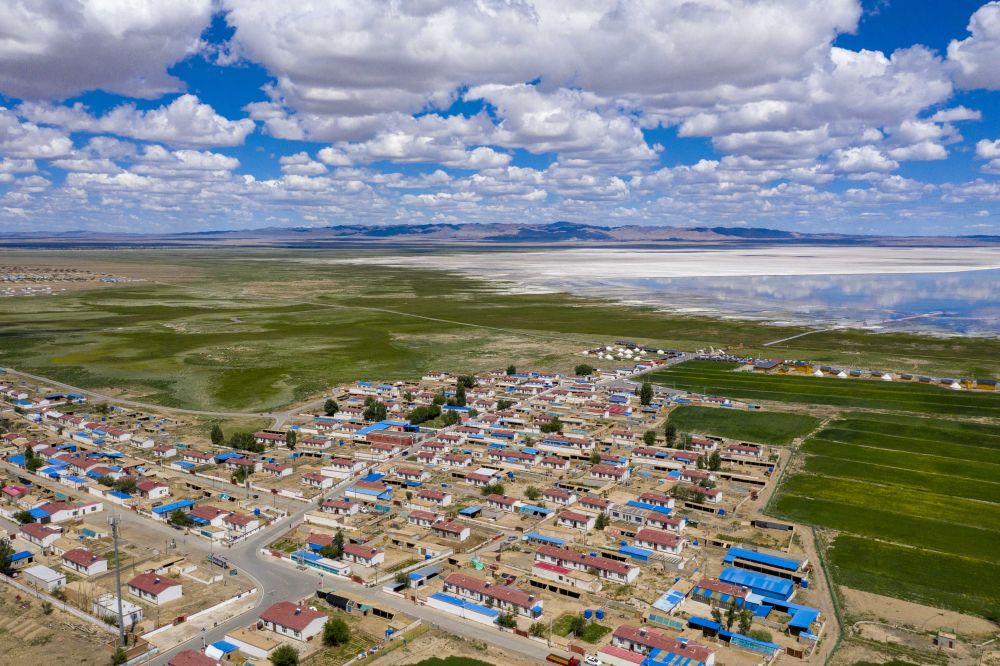 2021年7月1日拍攝的新疆巴里坤哈薩克自治縣海子沿鄉(xiāng)尖山子村(無人機照片)。