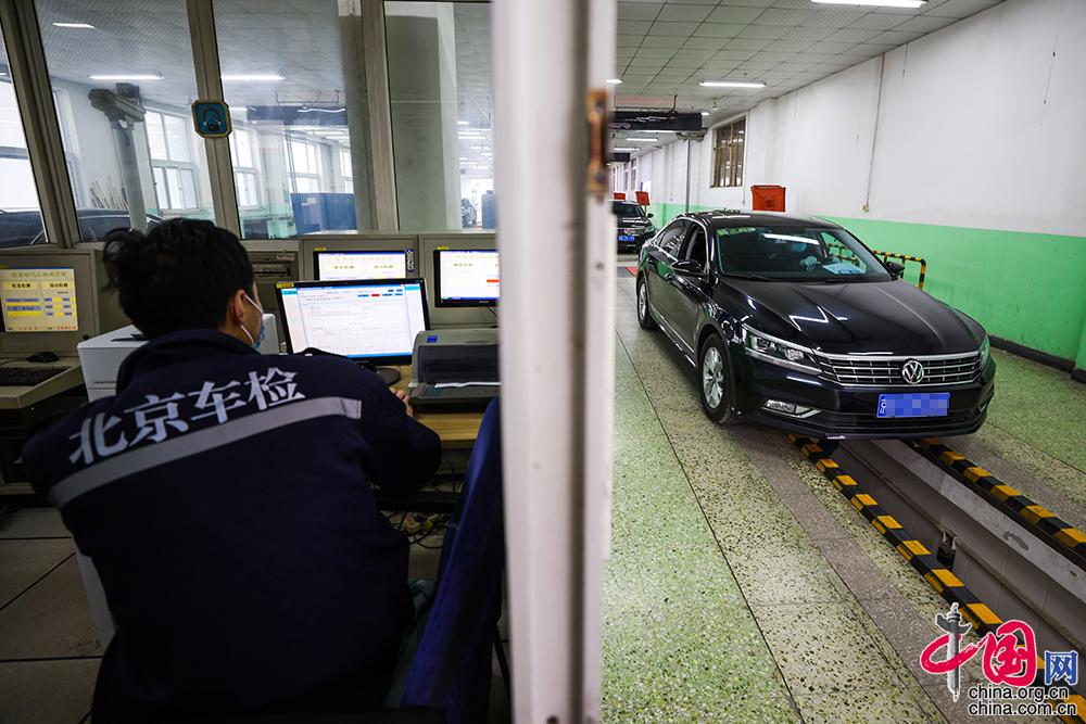參與檢測(cè)的車(chē)輛需要在檢測(cè)場(chǎng)進(jìn)行系統(tǒng)檢查,包括“專(zhuān)業(yè)檢查”、“電腦檢測(cè)”、“上線檢測(cè)”三道檢驗(yàn)工序。比如剎車(chē)、蓄電池的電壓、空調(diào)運(yùn)轉(zhuǎn)等。中國(guó)網(wǎng)記者 鄭亮攝