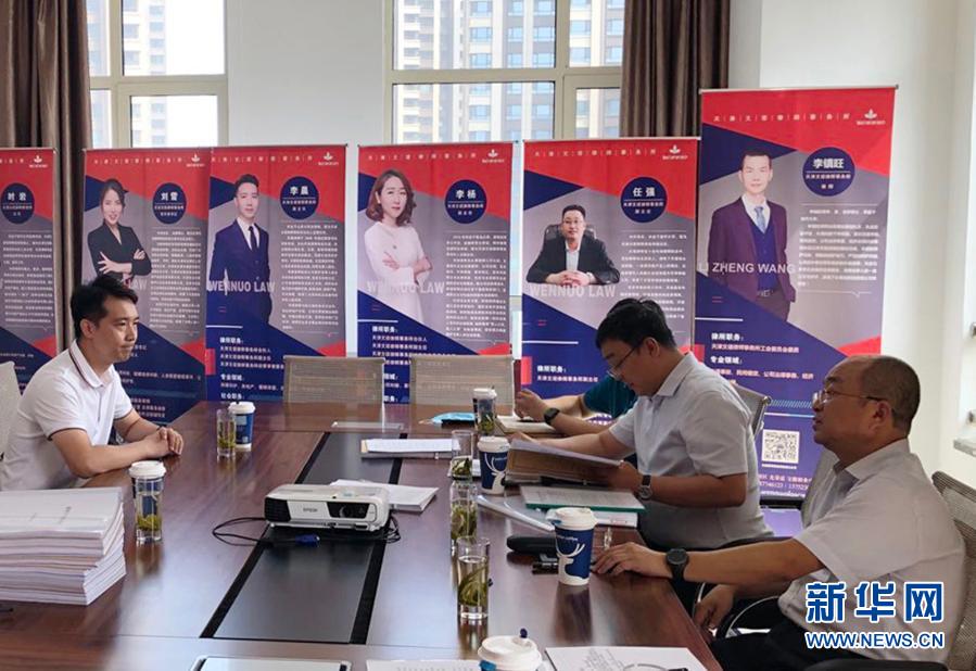全國(guó)人大代表才華(右一)在天津一家律師事務(wù)所調(diào)研(資料照片)。新華社發(fā)