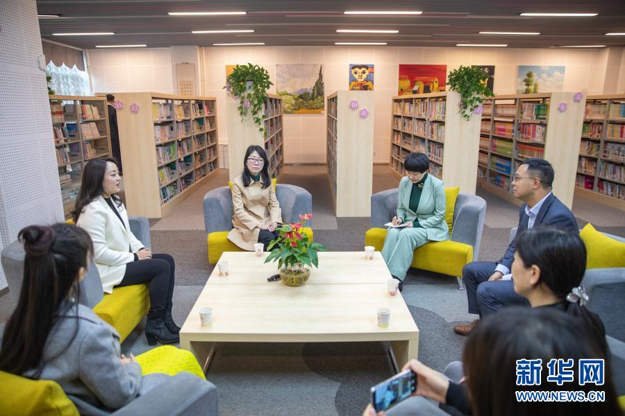 2月21日,在重慶市九龍坡區(qū)謝家灣小學(xué),劉希婭(左四)與部分家長(zhǎng)代表座談,收集家長(zhǎng)們對(duì)人工智能在基礎(chǔ)教育領(lǐng)域應(yīng)用的意見和建議。新華社記者 黃偉 攝