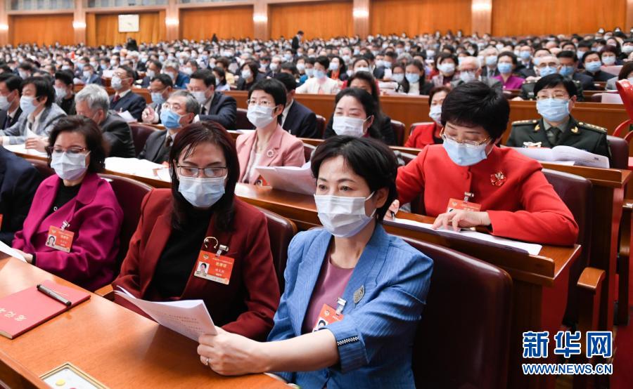 3月8日,十三屆全國人大四次會議在北京人民大會堂舉行第二次全體會議。這是幾位女代表在認(rèn)真聽會。新華社記者 丁林 攝