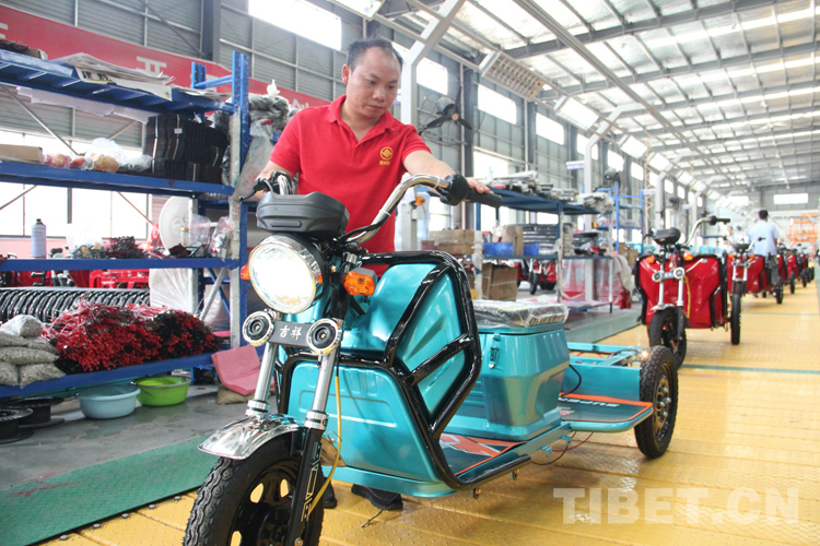在公司的車間里,各個(gè)流水線上的工人都在有序地忙碌著,在生產(chǎn)線的兩旁整齊地?cái)[放著一排排嶄新的電動(dòng)兩輪摩托車、三輪車。今年4月份剛剛來到工廠上班的打磨工人柳仕光是2017年搬進(jìn)阿妹戚托小鎮(zhèn)二期的三寶鄉(xiāng)易地搬遷居民,他之前在浙江一帶打工,生活上很不方便,無法照顧家中的老人和孩子,現(xiàn)在一家六口搬遷到阿妹戚托小鎮(zhèn),自己也在建隆公司當(dāng)起了打磨工人。“廠子離我家很近,一個(gè)月我能拿2000多元,搬遷前出門買個(gè)菜都要走幾十公里,現(xiàn)在可以在政府分的地上種蔬菜,還能照顧家人,生活比以前好了很多?!?/p>