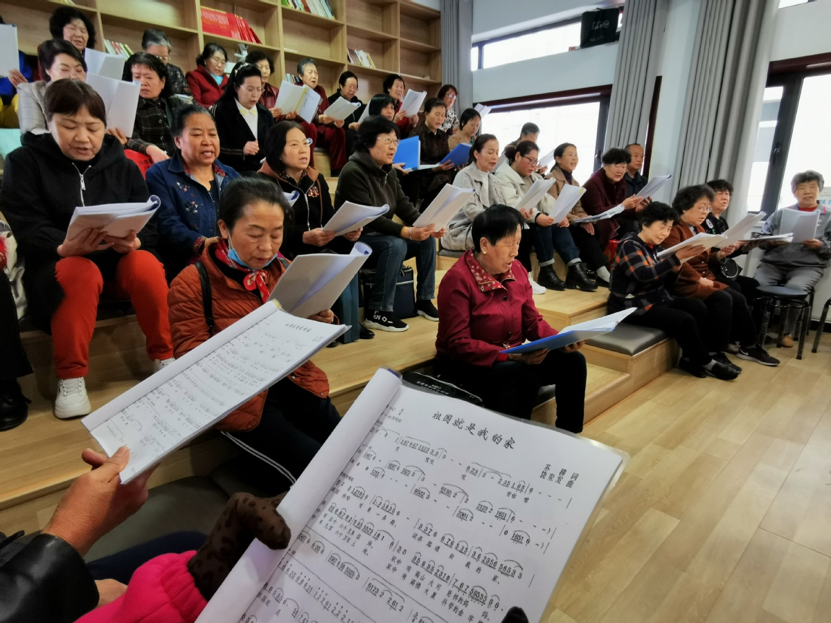 社區(qū)合唱團(tuán)在排練演唱《祖國(guó)就是我的家》。孫若男 攝