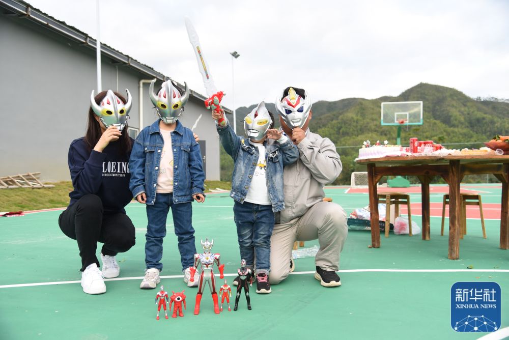 小女兒(右二)生日當(dāng)天,楊興義為她買了最愛(ài)的玩具(1月25日攝)。新華社記者田建川攝