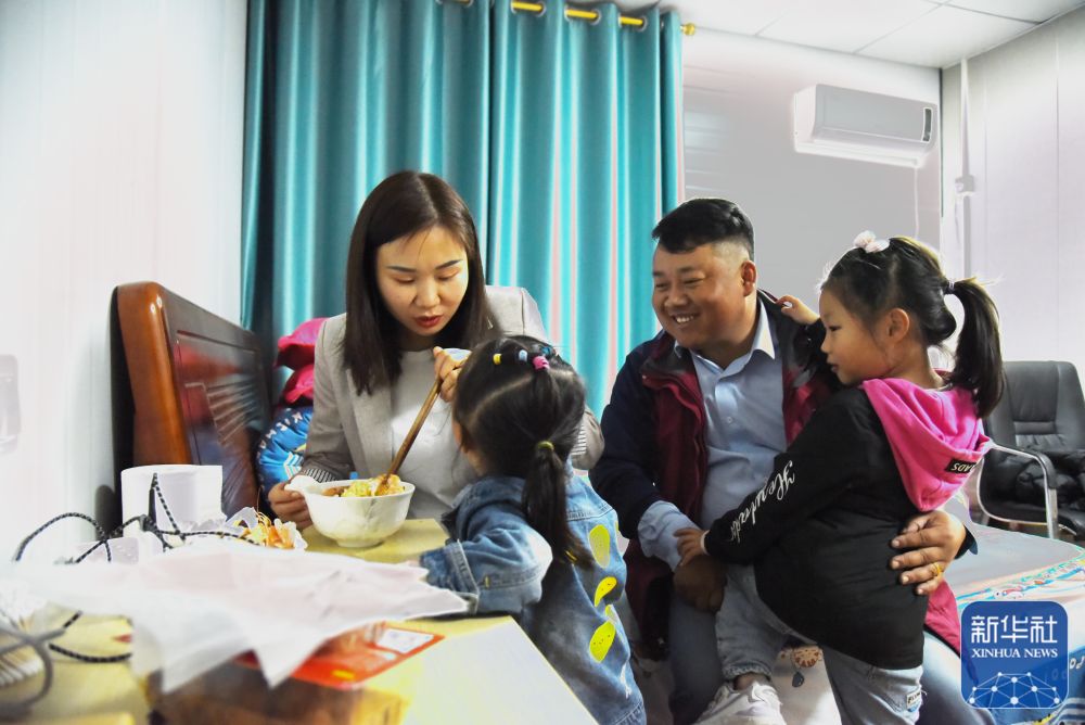 最近,他的妻子和兩個(gè)女兒來(lái)到項(xiàng)目部所在的廣東省汕尾市海豐縣,一家人在板房宿舍里團(tuán)聚了。