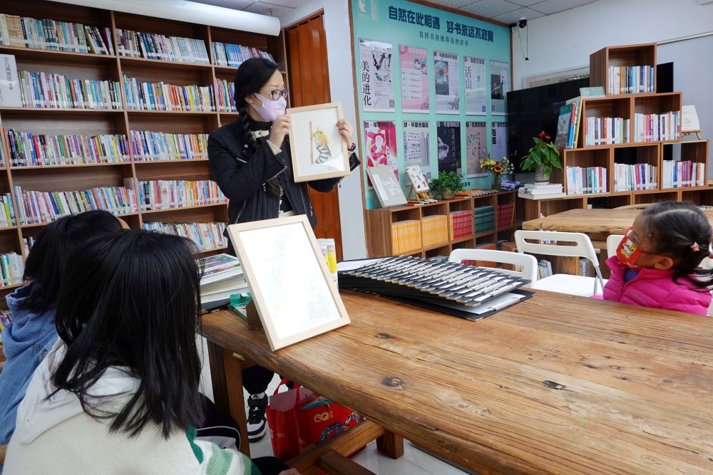 大年初四,陽光透過玻璃屋頂,灑滿金龜自然書房。偌大的書房里,各類書籍擺放得錯落有致。店長沈龍已備好紙張、畫筆、參考書籍等,靜待十幾組家庭學員前來參加親子閱讀、水彩繪畫活動。這些家庭有的來自附近街道,有的遠道駕車而來。
