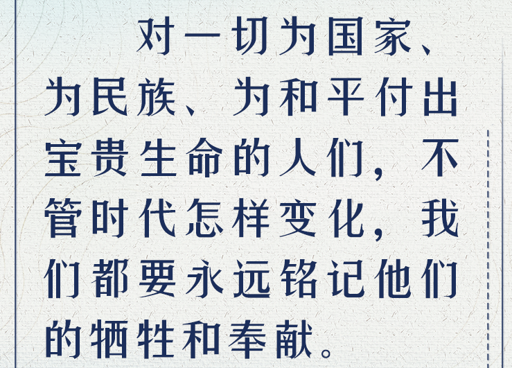 “一個有希望的民族不能沒有英雄,一個有前途的國家不能沒有先鋒。”“我們要永遠(yuǎn)銘記英烈的英雄事跡,世代發(fā)揚英烈的英雄精神。”