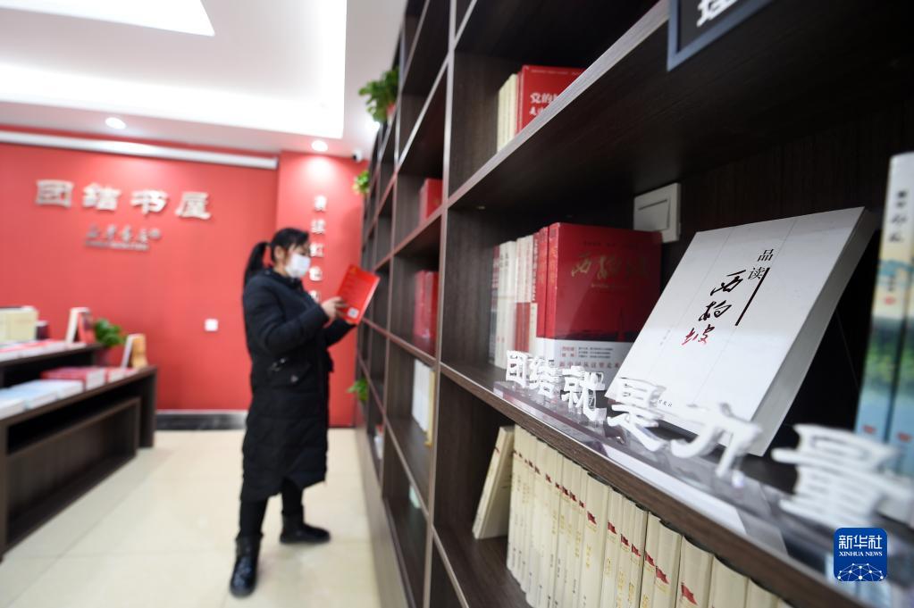 1月28日,在河北省平山縣西柏坡鎮(zhèn)北莊村團結(jié)書屋,工作人員在整理書籍。新華社記者 駱學峰 攝