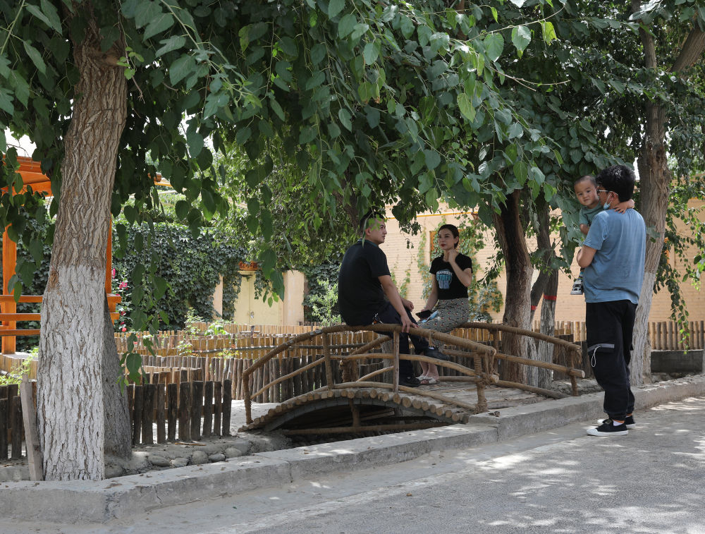 和田縣縣委常委、統(tǒng)戰(zhàn)部部長(zhǎng)艾尼瓦爾·阿迪力告訴記者,2019年全縣脫貧摘帽后,對(duì)于如何推進(jìn)鄉(xiāng)村振興,縣委提出先試點(diǎn),再以點(diǎn)帶面,稻香村就是鄉(xiāng)村“開(kāi)放式”旅游的試點(diǎn)村。這個(gè)村種植水稻上萬(wàn)畝,頗有“水鄉(xiāng)”風(fēng)貌,315國(guó)道穿村而過(guò),交通優(yōu)勢(shì)明顯,最關(guān)鍵的是基層干部通過(guò)細(xì)致入微的工作,激發(fā)起群眾積極支持和參與旅游興村的熱情。