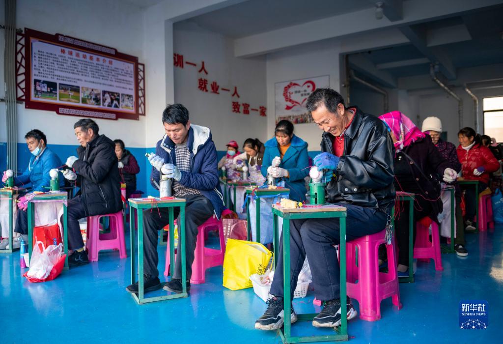 3月4日,脫貧群眾在云南省曲靖市會(huì)澤縣城搬遷安置點(diǎn)一棒球車間縫制棒球。新華社記者 陳欣波 攝