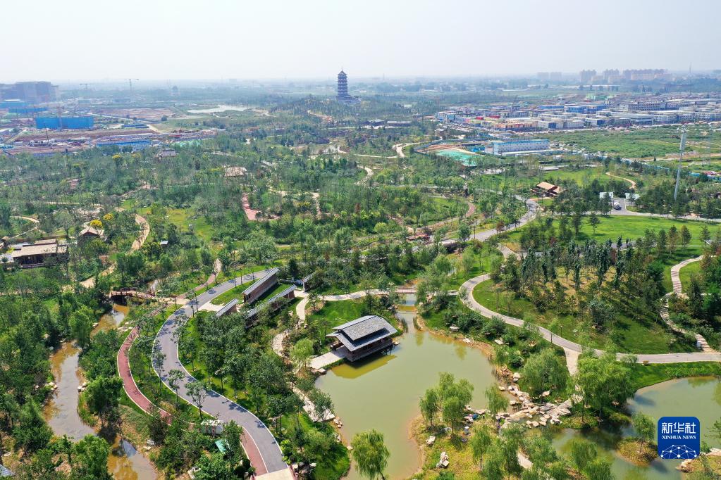這是雄安新區(qū)悅?cè)莨珗@北苑內(nèi)的景色(2021年9月1日攝,無人機照片)。新華社記者 牟宇 攝