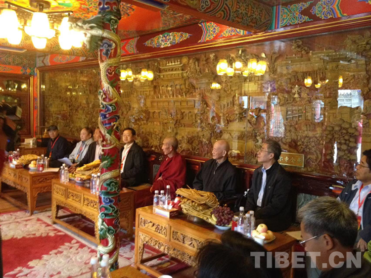 圖為2014年考察期間,專家學(xué)者們與塔爾寺寺管會(huì)領(lǐng)導(dǎo)交流