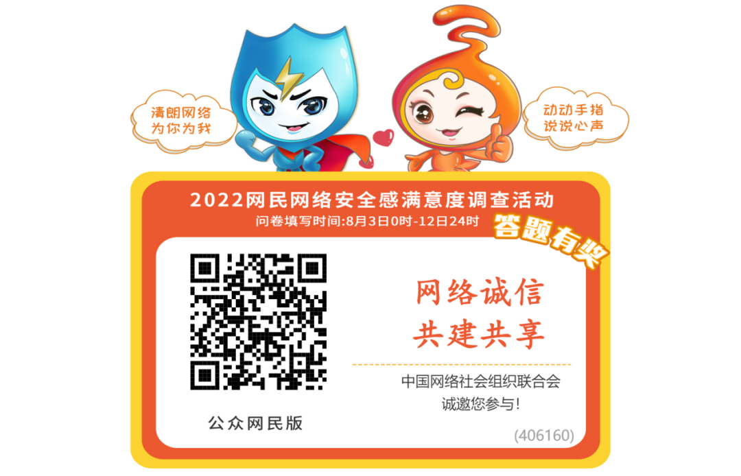 2022網(wǎng)民網(wǎng)絡(luò)安全感滿意度調(diào)查問(wèn)卷今日正式上線(答題有獎(jiǎng)!)