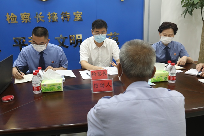 霍敏代表(中)帶案下訪接待信訪人。(資料圖)福建省人民檢察院供圖