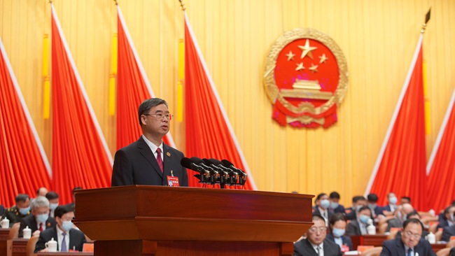 2022年1月23日,在福建省第十三屆人大六次會議上,福建省人民檢察院黨組書記、檢察長霍敏向大會作省檢察院工作報告。福建省人民檢察院供圖