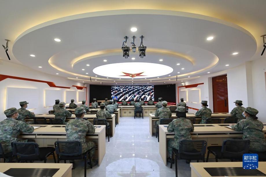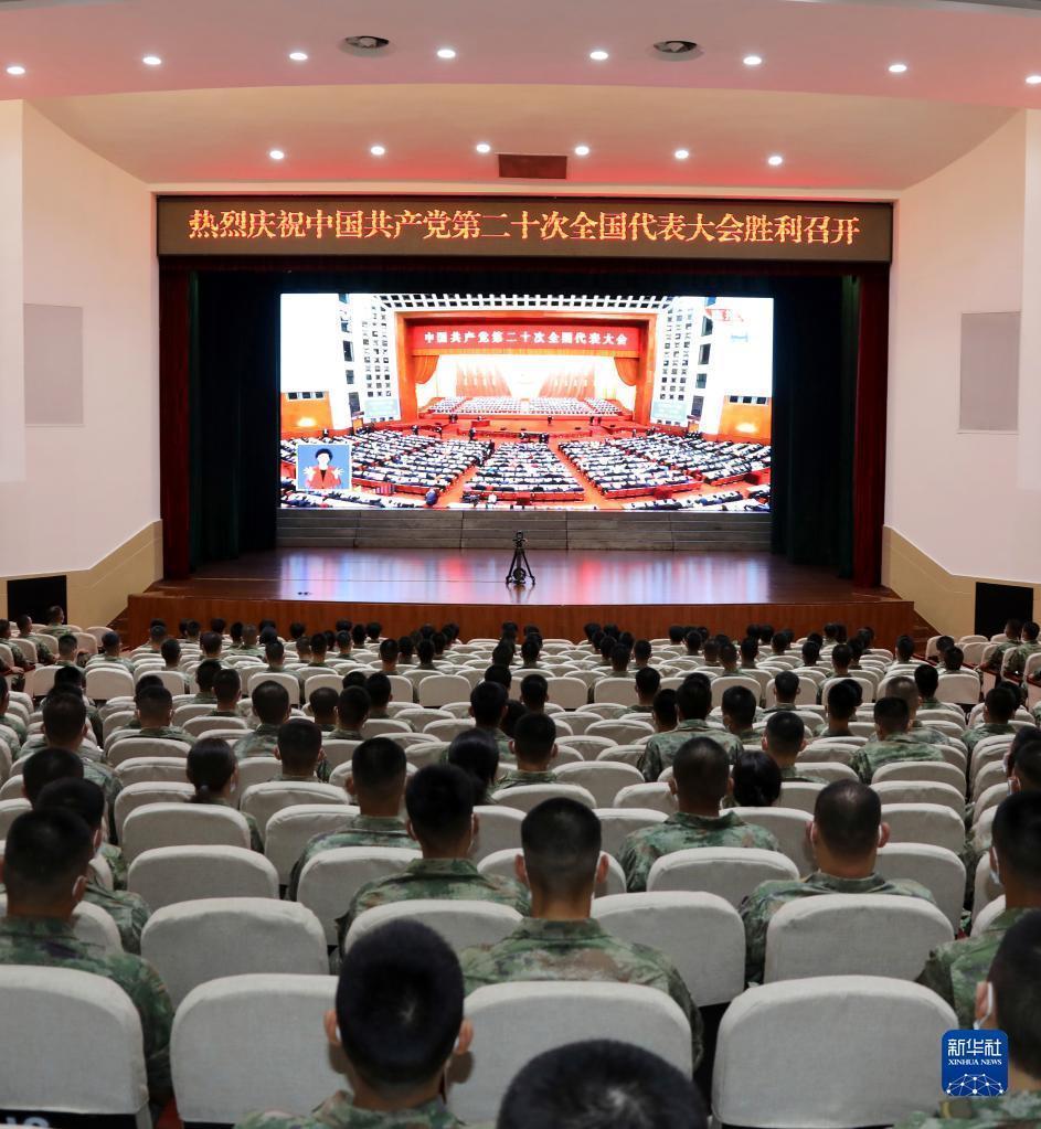 10月16日,中部戰(zhàn)區(qū)陸軍第82集團(tuán)軍某旅官兵收看中國共產(chǎn)黨第二十次全國代表大會開幕會。新華社發(fā)(徐超 攝)