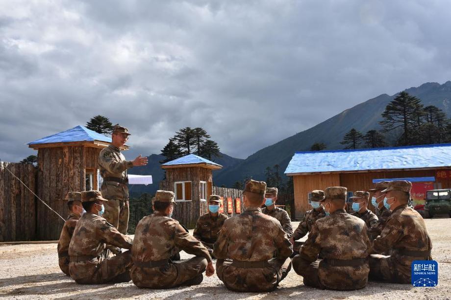 10月17日,西藏林芝軍分區(qū)“墨脫戍邊模范營”組織官兵學(xué)習(xí)黨的二十大報告。新華社發(fā)(游毅 攝)