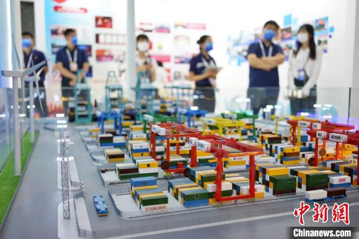 在天津港集團(tuán)展位,“全球首個(gè)智慧零碳碼頭沙盤”極具科技感,吸引參觀者駐足。 佟郁 攝