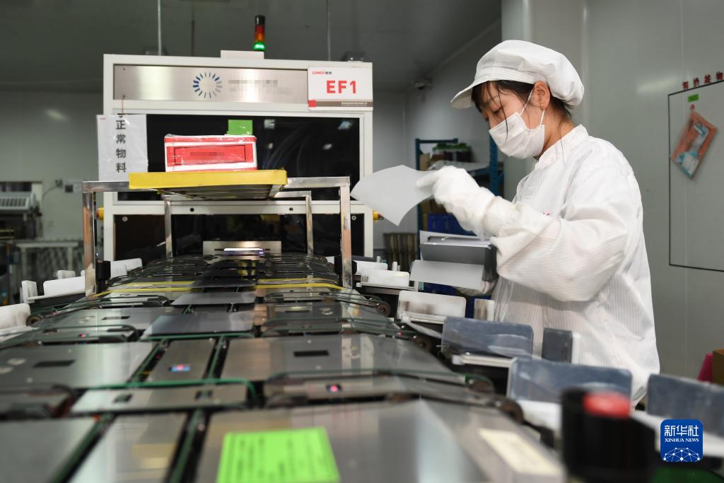 在隆基綠能科技股份有限公司西安切片工廠,工人在進行檢測包裝作業(yè)(2022年1月18日攝)。新華社記者 李一博 攝