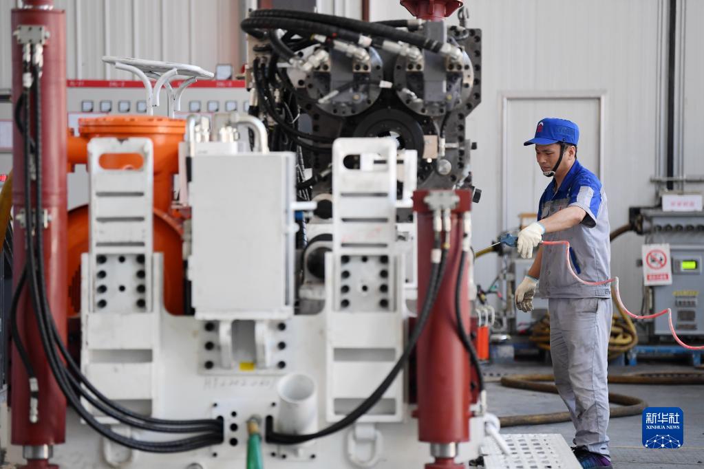 在位于秦創(chuàng)原總窗口所在地陜西省西咸新區(qū)的陜西太合智能鉆探有限公司,工人準備對智能定向鉆機進行性能調試(2022年6月17日攝)。新華社記者 李一博 攝