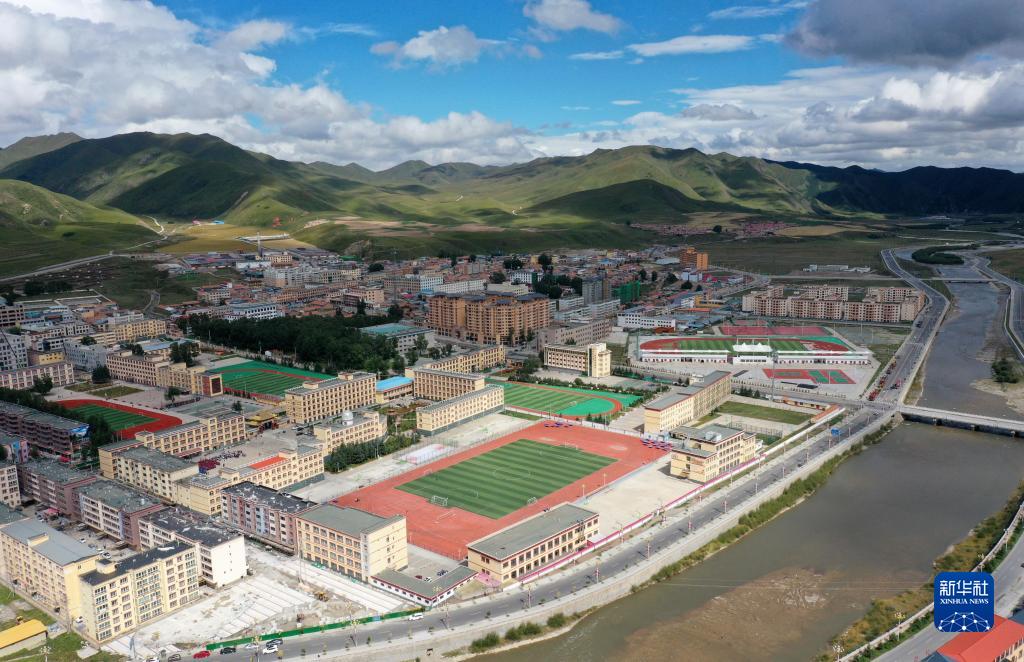 這是甘肅省甘南藏族自治州碌曲縣縣城(無(wú)人機(jī)照片,2021年8月30日攝)。新華社記者 杜哲宇 攝