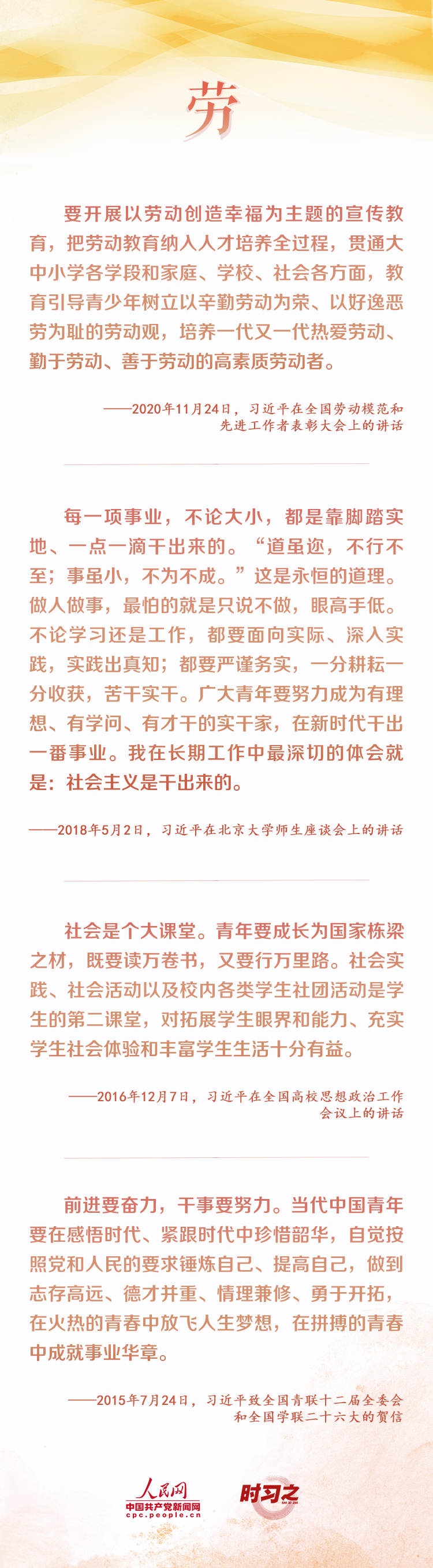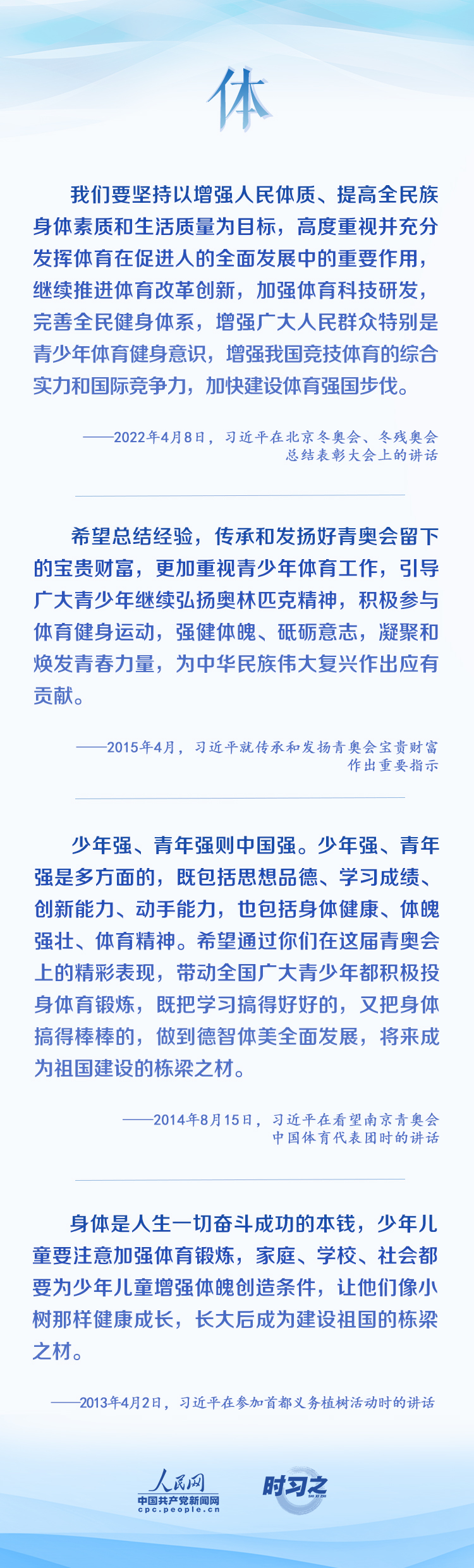 當(dāng)代中國青年生逢盛世、肩負(fù)重任,與新時代同向同行、共同前進(jìn)。在青春的賽道上奮力奔跑,爭取跑出當(dāng)代青年的最好成績,習(xí)近平激勵青年要德智體美勞全面發(fā)展。