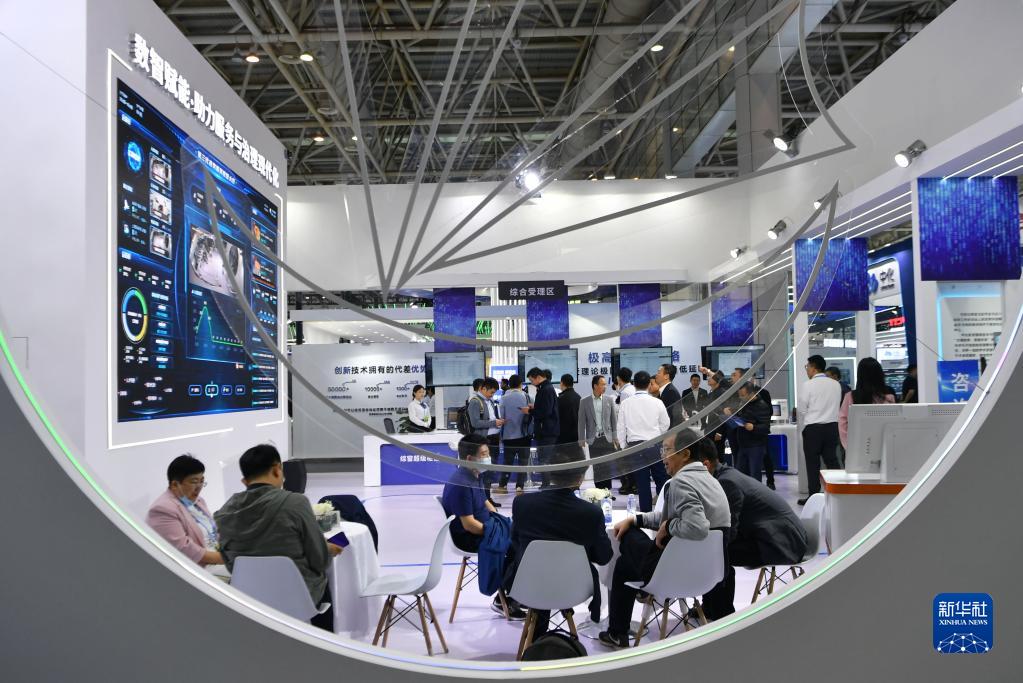 4月26日在第六屆數(shù)字中國建設(shè)成果展覽會上拍攝的數(shù)智賦能·助力服務(wù)與治理現(xiàn)代化展區(qū)一景。新華社記者 魏培全 攝