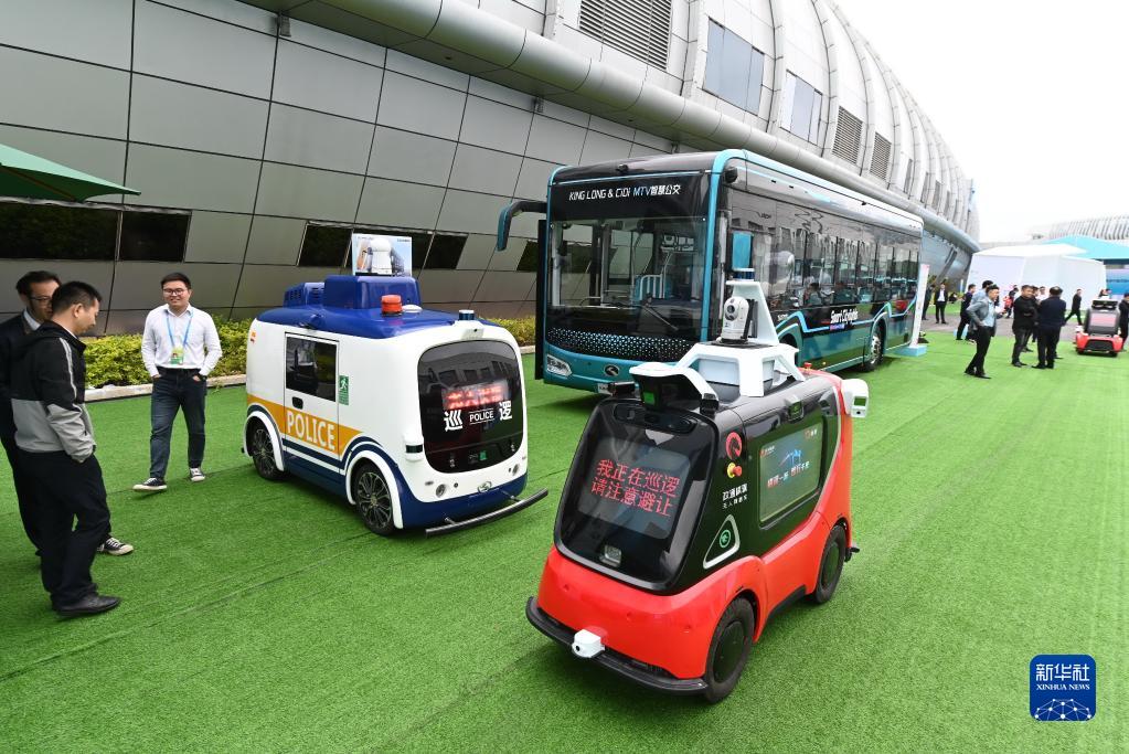 4月26日在第六屆數(shù)字中國建設(shè)成果展覽會上拍攝的多種智慧車輛。新華社記者 林善傳 攝