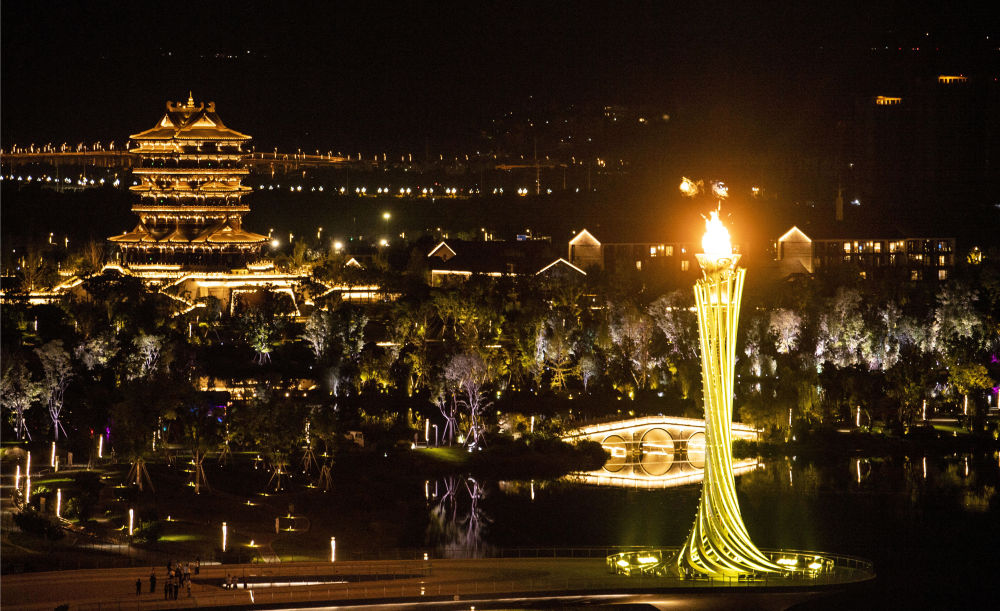 主火炬塔的火焰熊熊燃燒,照亮了全人類追求和平與發(fā)展的共同愿望,照亮了構建人類命運共同體的共同夢想!