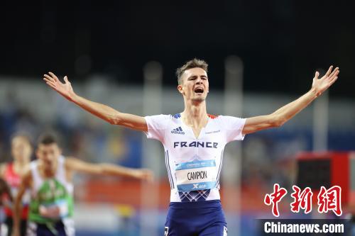 8月3日,成都大運(yùn)會(huì)男子1500米決賽中,法國(guó)隊(duì)選手坎皮恩獲得冠軍?!≈行律缬浾?蔣啟明 攝