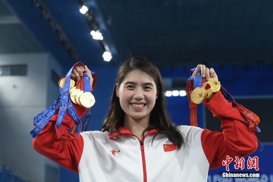 8月7日,第31屆世界大學(xué)生夏季運動會游泳項目比賽在四川成都全部結(jié)束后,張雨霏展示其在本屆大運會獲得的9枚金牌。成都大運會上,張雨霏獲得女子50米蝶泳、女子100米自由泳、女子100米蝶泳、女子50米自由泳、男女混合4×100米混合泳接力、男女混合4×100米自由泳接力、女子4×100米自由泳接力、女子4×100米混合泳接力、女子4×200米自由泳接力9項冠軍。
