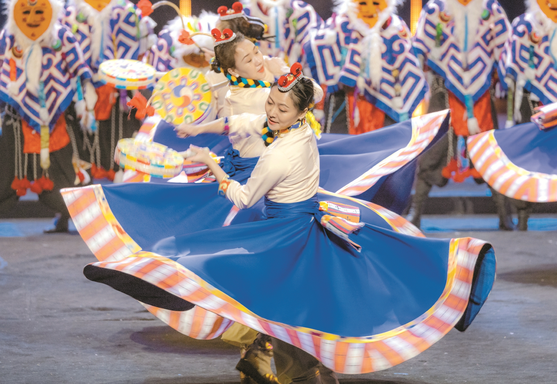 演出在開場(chǎng)歌舞《新年 扎西德勒》中拉開帷幕;《扎西熱巴》《豐收的喜悅》等文藝交往交流交融成果的演出,展現(xiàn)了中華優(yōu)秀傳統(tǒng)文化的博大精深和與時(shí)俱進(jìn);“甜野男孩”丁真帶來的《天空下的溫暖》治愈人心,烏蘭圖雅傾情呈現(xiàn)《拉薩我的家》,次仁桑珠的《歡樂幸福年》喜慶吉祥,雜技《劈風(fēng)斬浪》剛?cè)岵?jì),驚艷眾人;《弘》《羌塘魂》《熱堆諧欽》《熱巴多吉》等節(jié)目接連登場(chǎng),讓觀眾享受到極富西藏特色歌舞的同時(shí),也感受到西藏人民的深情厚誼。現(xiàn)場(chǎng)更有在江蘇就業(yè)的拉薩籍高校畢業(yè)生和南通西藏民族中學(xué)的孩子們現(xiàn)身,在千里之外聽到鄉(xiāng)音。17個(gè)節(jié)目全面展現(xiàn)了新時(shí)代拉薩新氣象、新面貌,舞美變幻、光效爛漫?,F(xiàn)場(chǎng)掌聲不斷,氣氛熱烈祥和。