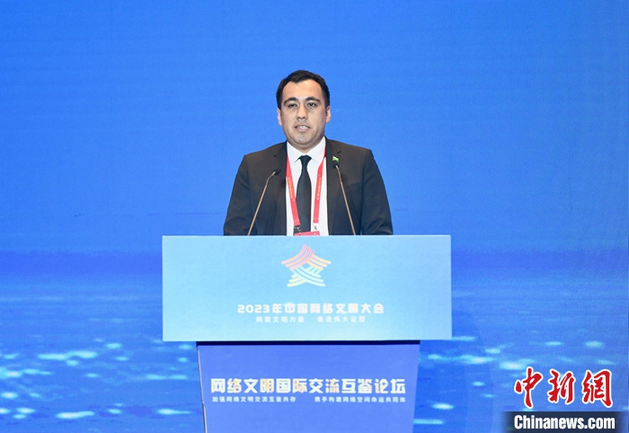 7月18日,2023年中國網(wǎng)絡文明大會網(wǎng)絡文明國際交流互鑒論壇在廈門舉辦。圖為中國石油大學(北京)土庫曼斯坦籍留學生若賀曼作主題演講。中新社記者 王東明 攝