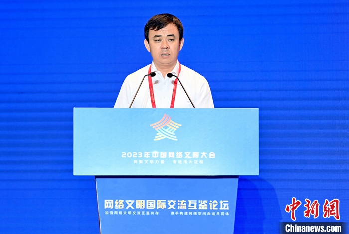 7月18日,2023年中國(guó)網(wǎng)絡(luò)文明大會(huì)網(wǎng)絡(luò)文明國(guó)際交流互鑒論壇在廈門(mén)舉辦。圖為山東省日照市委副書(shū)記王新生作主題演講。中新社記者 王東明 攝