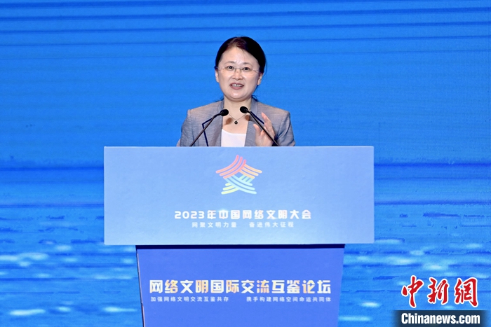 7月18日,2023年中國(guó)網(wǎng)絡(luò)文明大會(huì)網(wǎng)絡(luò)文明國(guó)際交流互鑒論壇在廈門(mén)舉辦。圖為江蘇省蘇州市委網(wǎng)信辦主任陳雪嶸作主題演講。中新社記者 王東明 攝