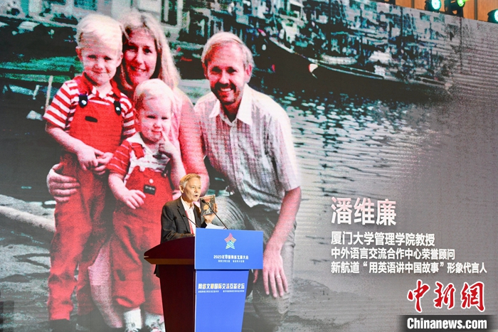 7月18日,2023年中國(guó)網(wǎng)絡(luò)文明大會(huì)網(wǎng)絡(luò)文明國(guó)際交流互鑒論壇在廈門(mén)舉辦。圖為廈門(mén)大學(xué)美籍教授潘維廉作主題演講。中新社記者 王東明 攝