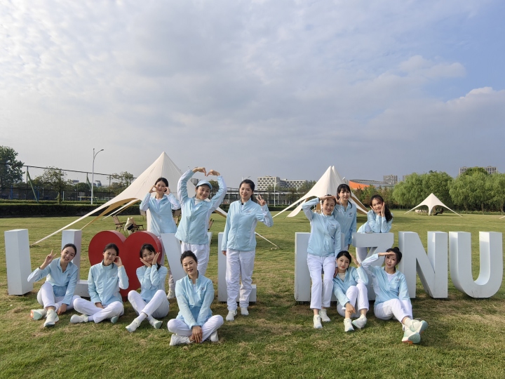 12人小分隊在杭州師范大學(xué)排練時合影留戀。受訪者供圖