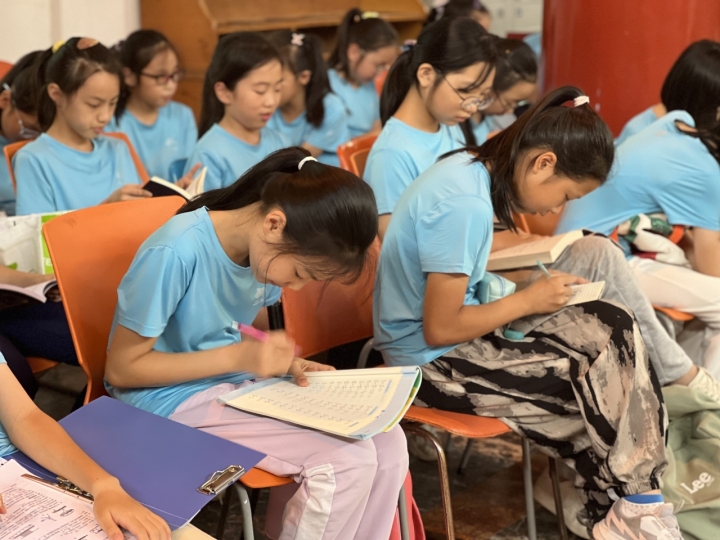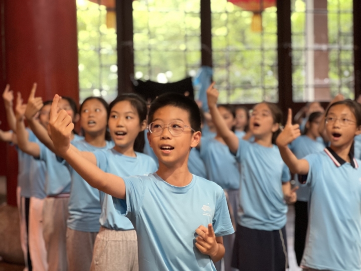 “基本是小學(xué)三年級(jí)以上的孩子們,身高在一米到一米三之間?!鄙铣菂^(qū)青少年活動(dòng)中心藝術(shù)教師吳雁告訴潮新聞?dòng)浾?,孩子們基本都有演唱基礎(chǔ),所以對(duì)他們來(lái)說(shuō),完成合唱最難的是學(xué)習(xí)手語(yǔ)動(dòng)作,并且還得做得整齊,做得漂亮。
