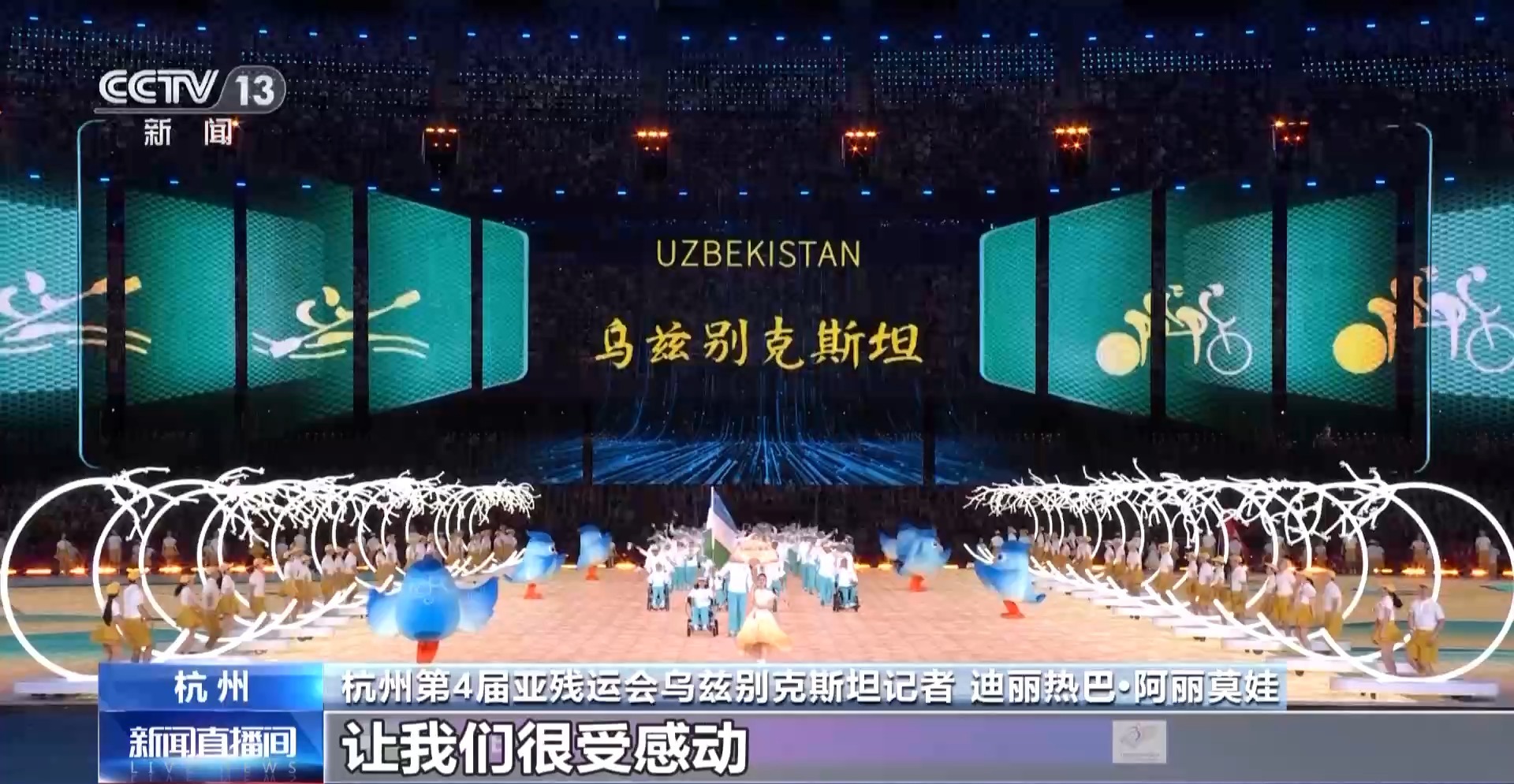 杭州第4屆亞殘運會烏茲別克斯坦記者 迪麗熱巴 阿麗莫娃:當(dāng)我們國家的代表團入場時受到了全場熱情的歡迎,讓我們很受感動,烏茲別克斯坦和中國是最好的朋友。我們的總統(tǒng)最近在北京參加了“一帶一路”國際合作高峰論壇。我們與中國有很多的合作項目,我相信我們兩國的友誼和在各個領(lǐng)域的合作未來將一直持續(xù)下去。