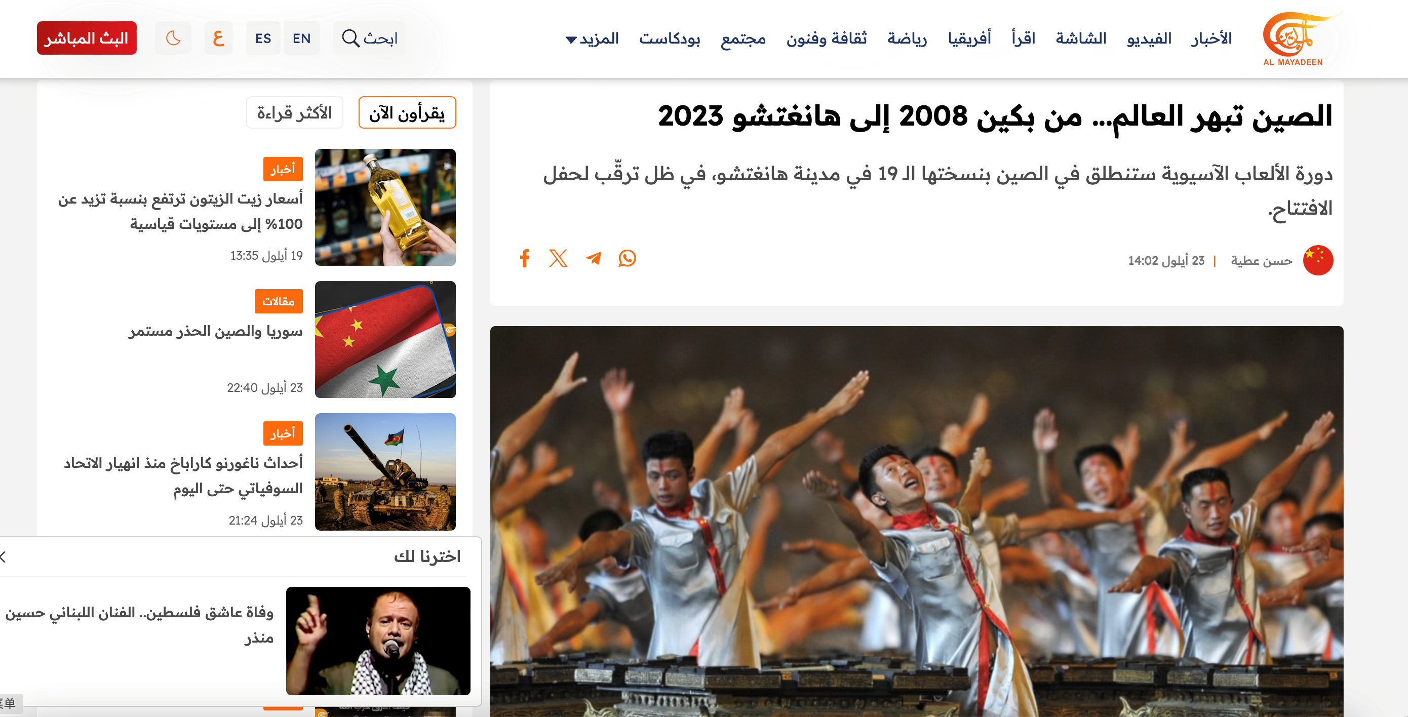 9月23日晚,第十九屆亞洲運(yùn)動(dòng)會(huì)在中國(guó)浙江省杭州市拉開帷幕。當(dāng)晚開始,中東各大媒體就頻繁聚焦開幕盛況,第一時(shí)間播發(fā)報(bào)道。