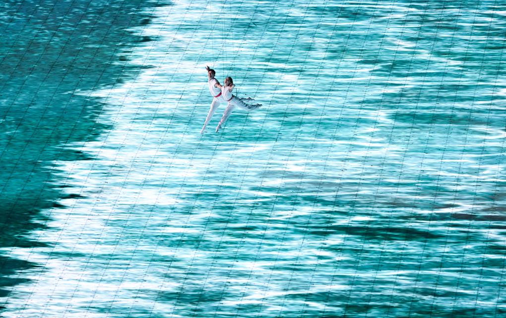 這是9月23日拍攝的杭州亞運(yùn)會(huì)開幕式3D雙威亞。新華社記者 胡虎虎 攝
