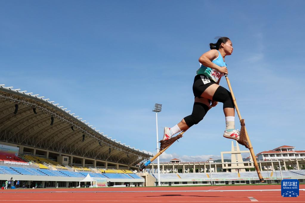 當(dāng)日,第十二屆全國少數(shù)民族傳統(tǒng)體育運(yùn)動(dòng)會(huì)高腳競速女子400米復(fù)賽在海南省三亞市舉行。